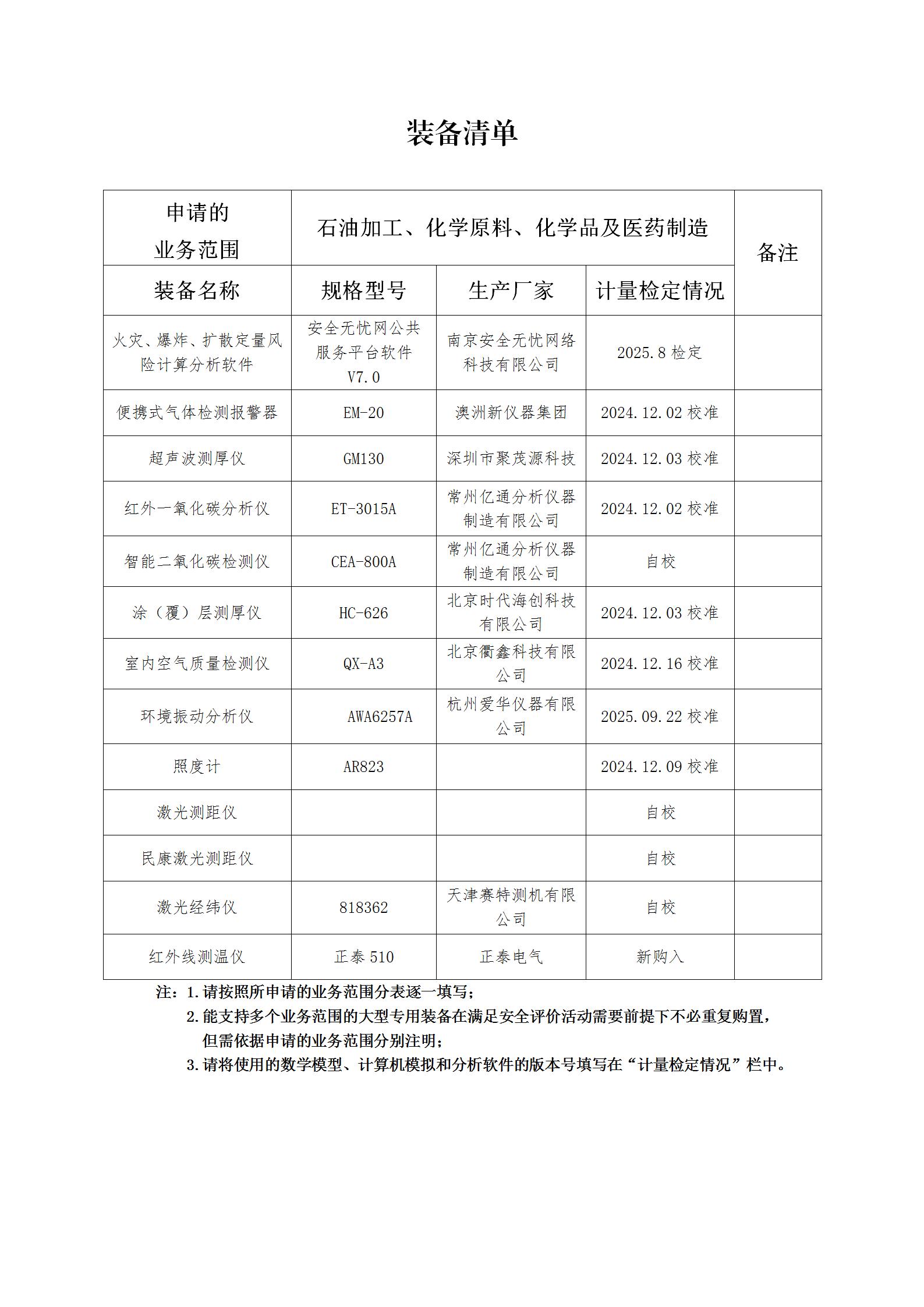 昭通市鼎安科技有限公司專(zhuān)業(yè)設(shè)備、設(shè)施一覽表