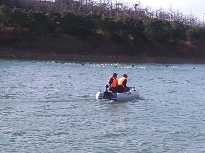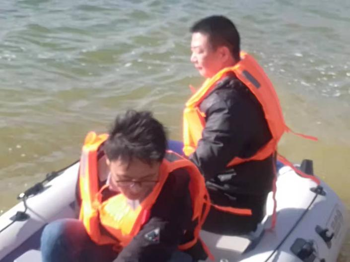 2022年1月19日下午,鼎安第一艘航測船下水。這是個有陽光的冬日,寒風依舊呼嘯,寒氣依舊逼人,永豐水庫湖面上,一艘銀色航測船緩慢移動后,逐漸快了起來,一群水鳥在上空盤旋歡鳴。藍色的湖上泛起點點金光,航測船的紅色救身衣在風中獵獵作響,為這冬日的湖增添幾分嫵媚。